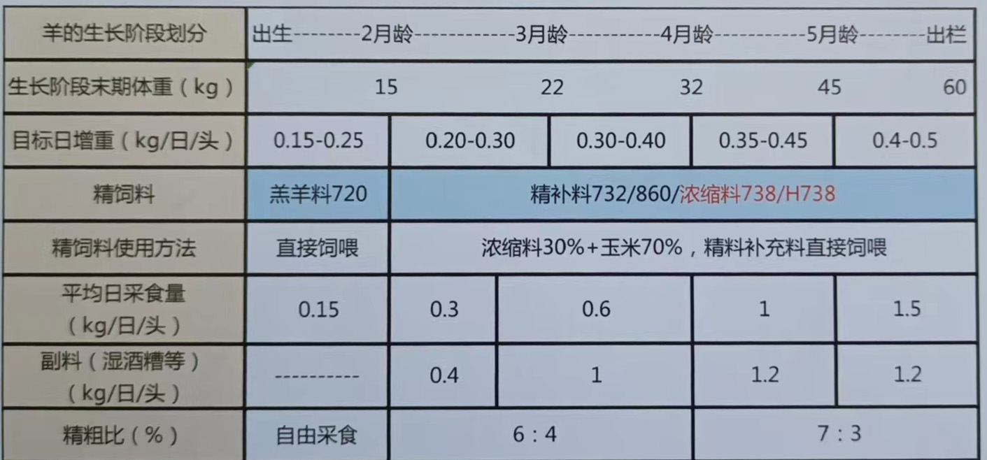 放牧和舍飼絨山羊DMI接近1kg/d,約占平均體重的3.5%3月齡的波爾山羊DMI1~1.2kg/d,約占平均體重的4%;生長(zhǎng)期波雜肉羊DMI0.65kg/d,約占體重的4%。另外不同生長(zhǎng)階段的肉羊因體重不同,DMI也有很大的差異,詳見下表。